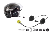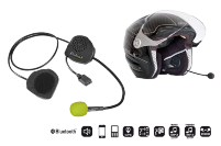 • Dispositivo Bluetooth® totalmente integrado dentro del casco. • 2 altavoces. • Escucha música en alta definición y sigue las instrucciones del GPS. • Puerto de carga USB integrado en el micrófono. • Listo para conectar con cualquier teléfono con Bluetooth®. • Conexión Múltiple: conecta dos teléfonos a la vez. • Función de conexión Dual: soporta otra conexión Bluetooth® además del teléfono. • Sistema electrónico miniaturizado y compacto integrado en los auriculares. • Botón intuitivo ubicado en el micrófono. • Un solo botón LED, rojo o azul, integrado en el micrófono. • Respuesta automática por voz. • Fácil de instalar.