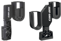 Soporte en U abierto para herramientas (pala, hacha) y armas de caza (rifle, arco) que ofrece seguridad y acceso fácil al mismo tiempo.
